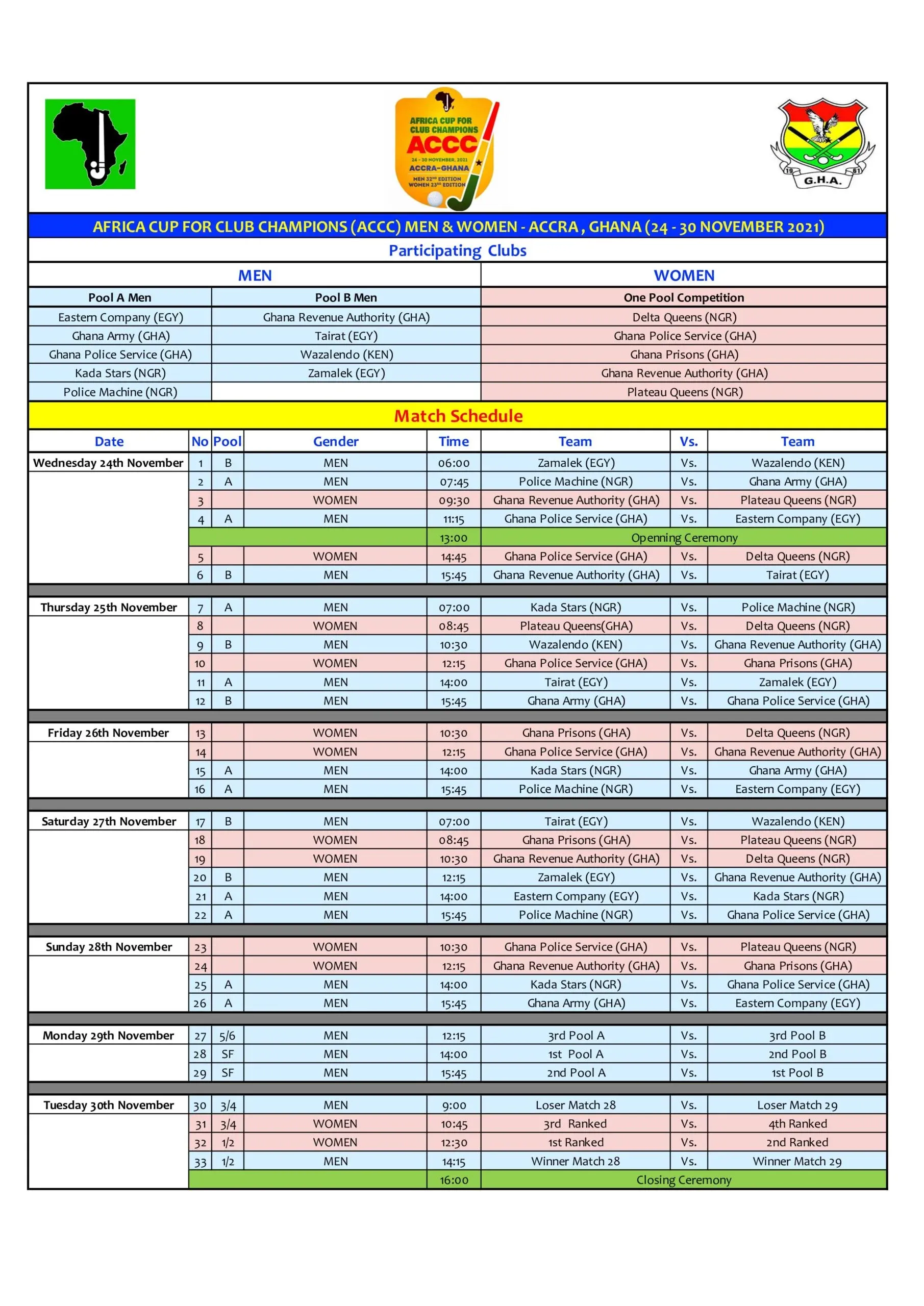 ACCC 2021 (MEN 32nd Edition – WOMEN 23rd Edition) – Fixtures