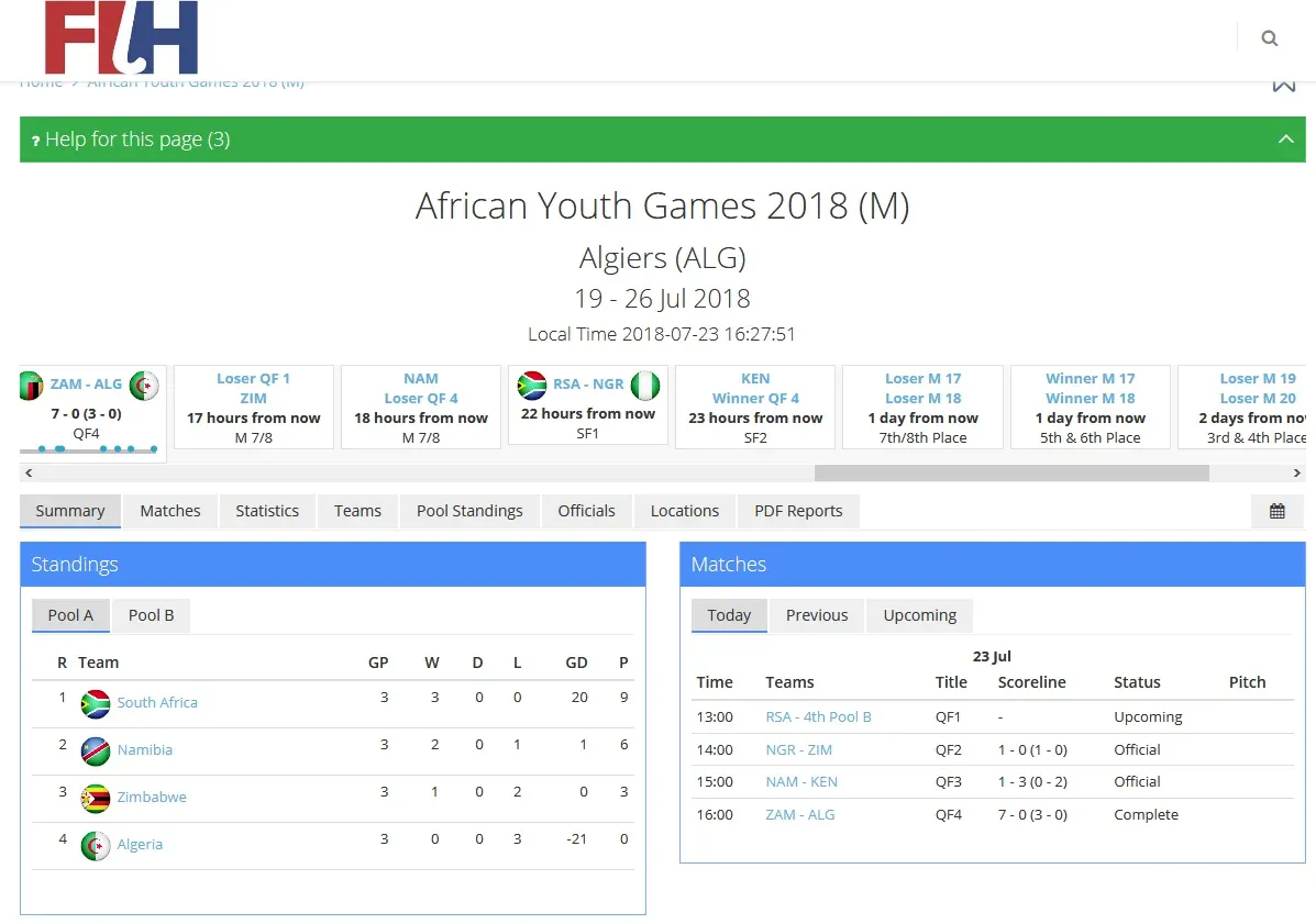 • Africa Youth Games / AYG 2018: Score sheet for Day 4 (Men)