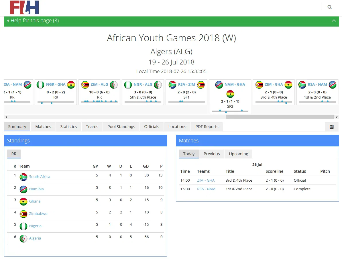 Official LogoAYG 2018: Score sheet for First Day (Men) Official LogoAYG 2018: Score Sheet for Day 2 (Men) Official LogoAYG 2018: Score sheet for Day 4 (Women) AYG 2018: Nigeria beats host Algeria to place 5th