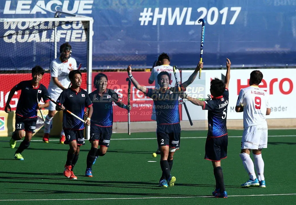 JOHANNESBURG, SOUTH AFRICA – JULY 09: Shota Yamada of Japan celebrates his goal during day 1 of the FIH Hockey World League Semi Finals Pool A match between Spain and