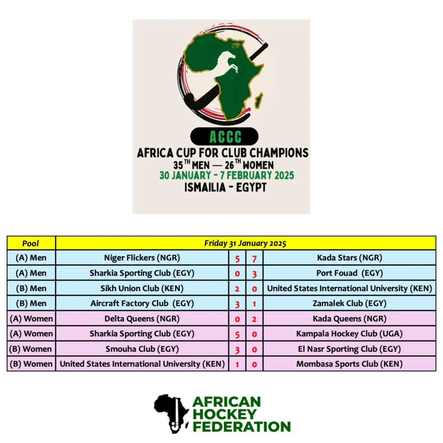 Day 2 | ACCC 35th Men & 26th Women Editions. The tournaments feature 10 Men and 10 Women clubs from Egypt πŸ‡ͺπŸ‡¬ Ghana πŸ‡¬πŸ‡­ Kenya πŸ‡°πŸ‡ͺ Nigeria πŸ‡³πŸ‡¬ Uganda πŸ‡ΊπŸ‡¬