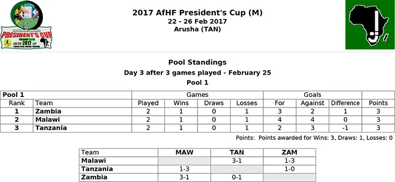 The Zambian Men’s team consigned host Tanzania to third place on the log with a 3-1 win over Malawi on match day 3. With the win, Zambia leap-frog both Malawi and the host to sit comfortably at the summit. Malawi came in second and will face Zambia in the finals on Sunday afternoon.