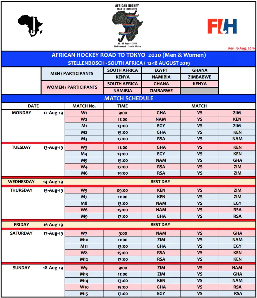 FINAL POOLS AND FIXTURES ROAD TO TOKYO SOUTH AFRICA AUG 2019 – UPDATED