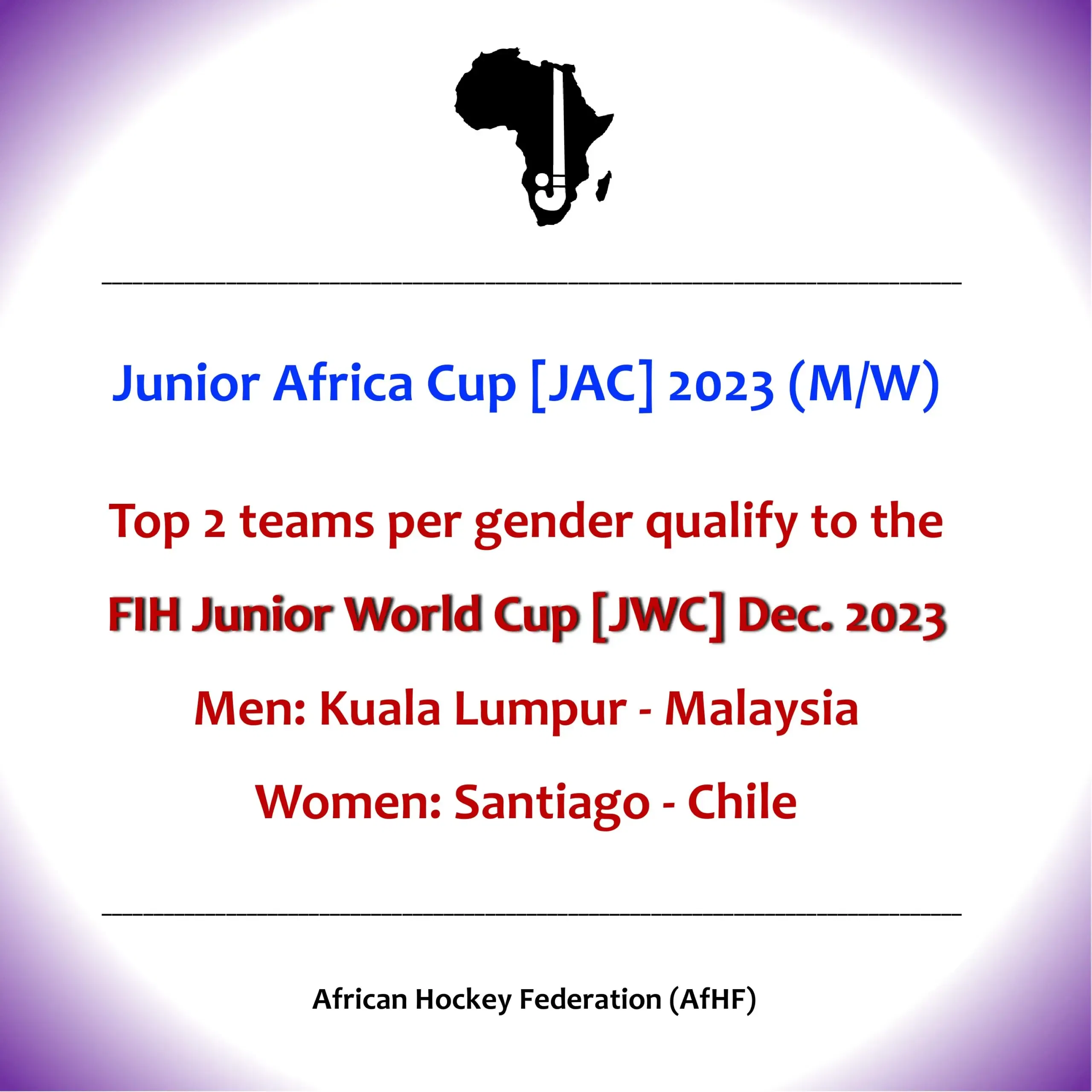 Junior Africa CupAnnouncement: Junior Africa Cup [JAC] 2021 (M/W) – Namibia Hockey: Kenyan sides lose openers in Africa Cup EARLY ELIMINATION: Kenya U-21 women’s hockey team out of WC qualifiers JAC 2023 (Men/Women) | Zim Women’s hockey team on brink of WC qualification