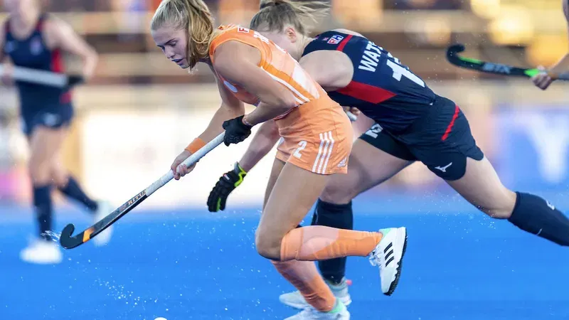09 December, 2023 Lausanne, Switzerland: Netherlands stormed into the finals of the FIH Hockey Women’s Junior World Cup 2023 as they thrashed England by 8-1 goals in a one-sided match. In