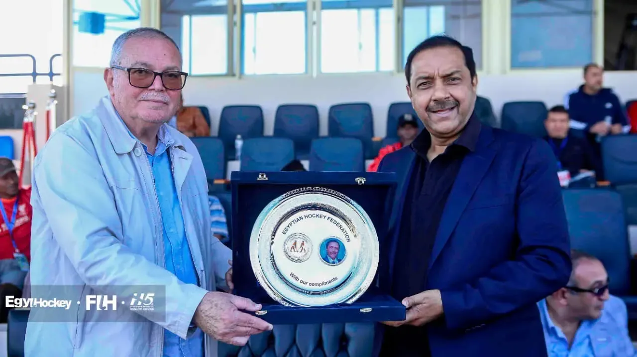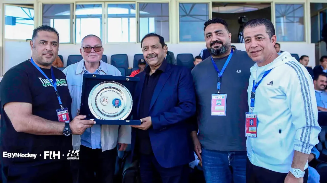 On the sidelines of the 1st African Hockey 5s World Cup Qualifiers (Men/Women), Captain Sherif Kamal, President of the الأتحاد المصرى للهوكى EgyHockey dedicates the shield of Egyhockey to Mr. Tayyab Ikram, President of the International Hockey Federation (FIH) in the presence of the members of Egychockey’s Board of Directors and Mr. Seif Ahmed, President of the African Hockey Federation