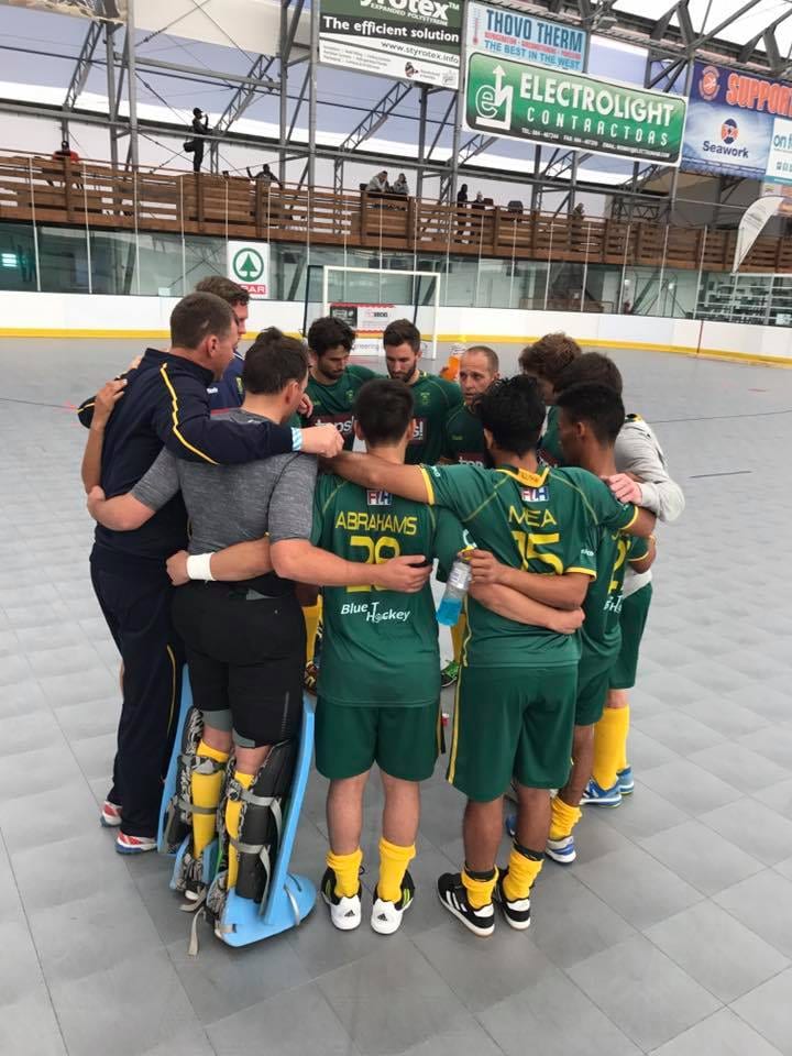 The first match of the Mens tournament at the African Hockey Indoor Cup of Nations produced a battle that few would have anticipated. After a tentative 10 minutes Zimbabwe stunned SA with a poachers goal. That seemed to kick start the SA men though as a hat-trick by Olympian Wade Paton made the half-time score 3-1.